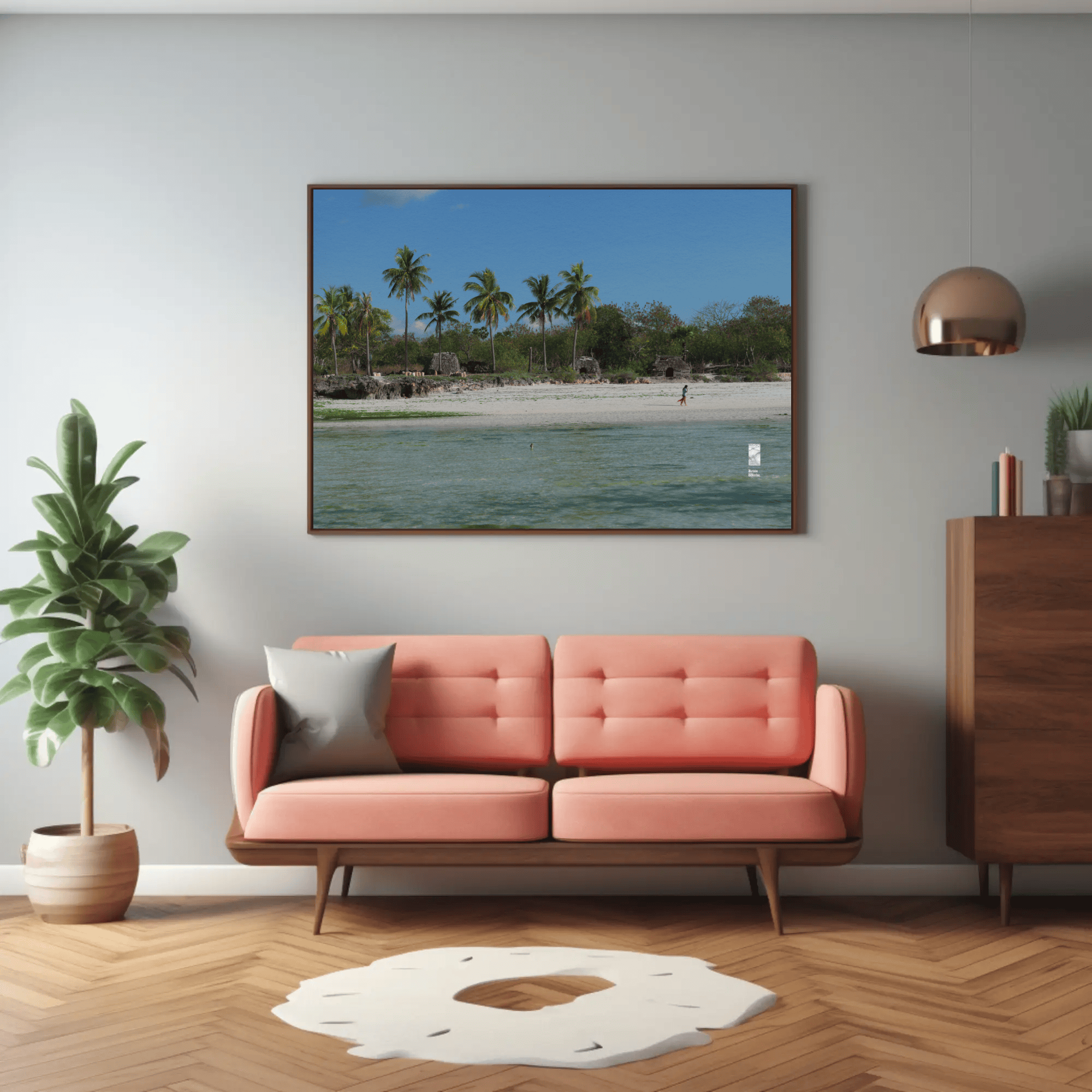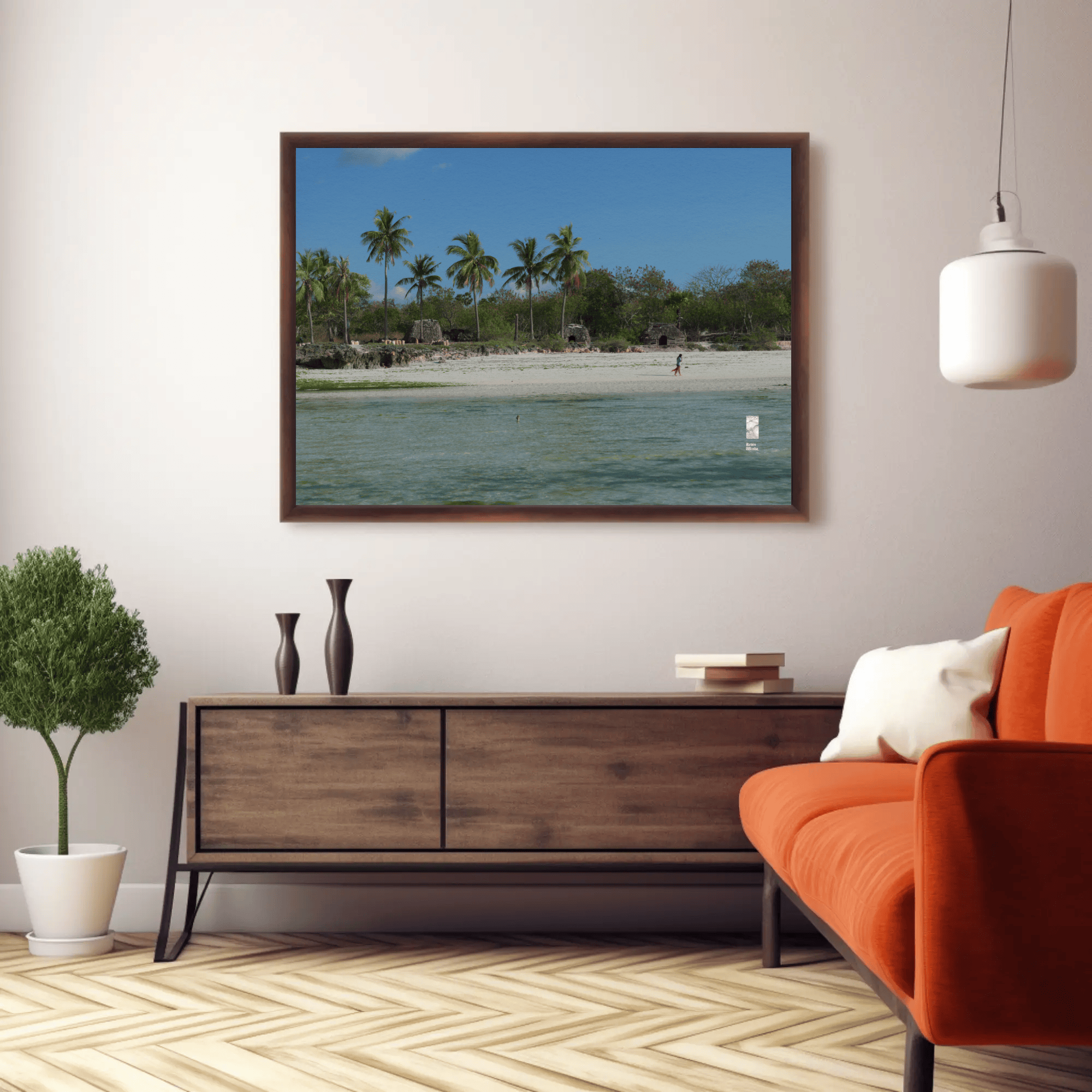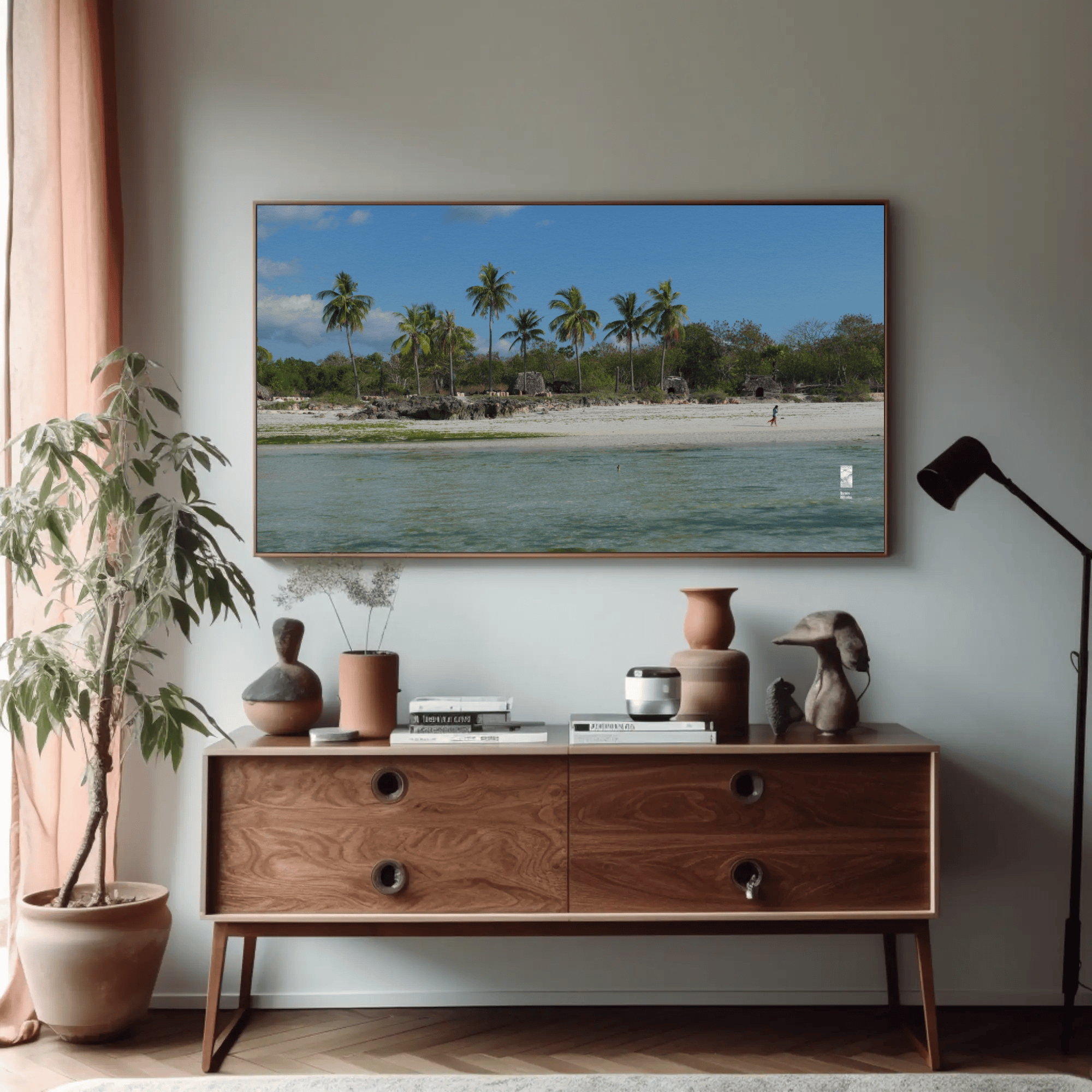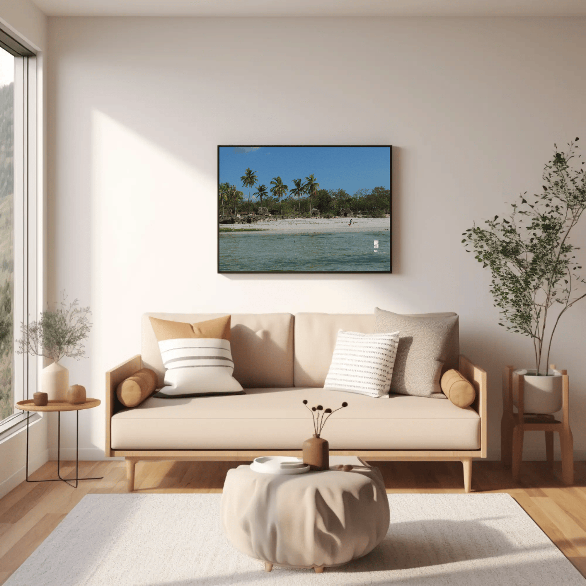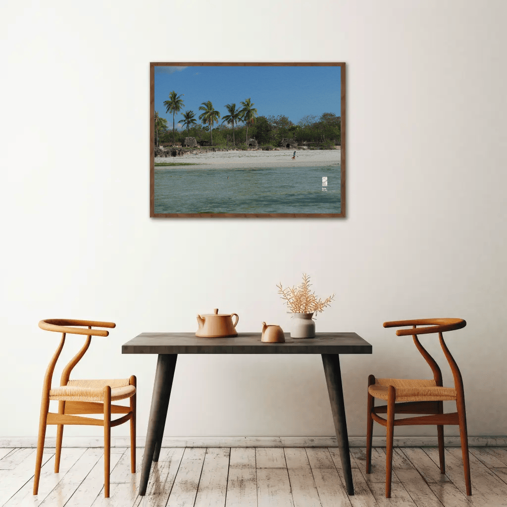 Mockups don't represent actual product sizes that you choose via variant options. Mockups just present artwork impressions in different environments. Frames and interior objects on mockups are not included in your order.