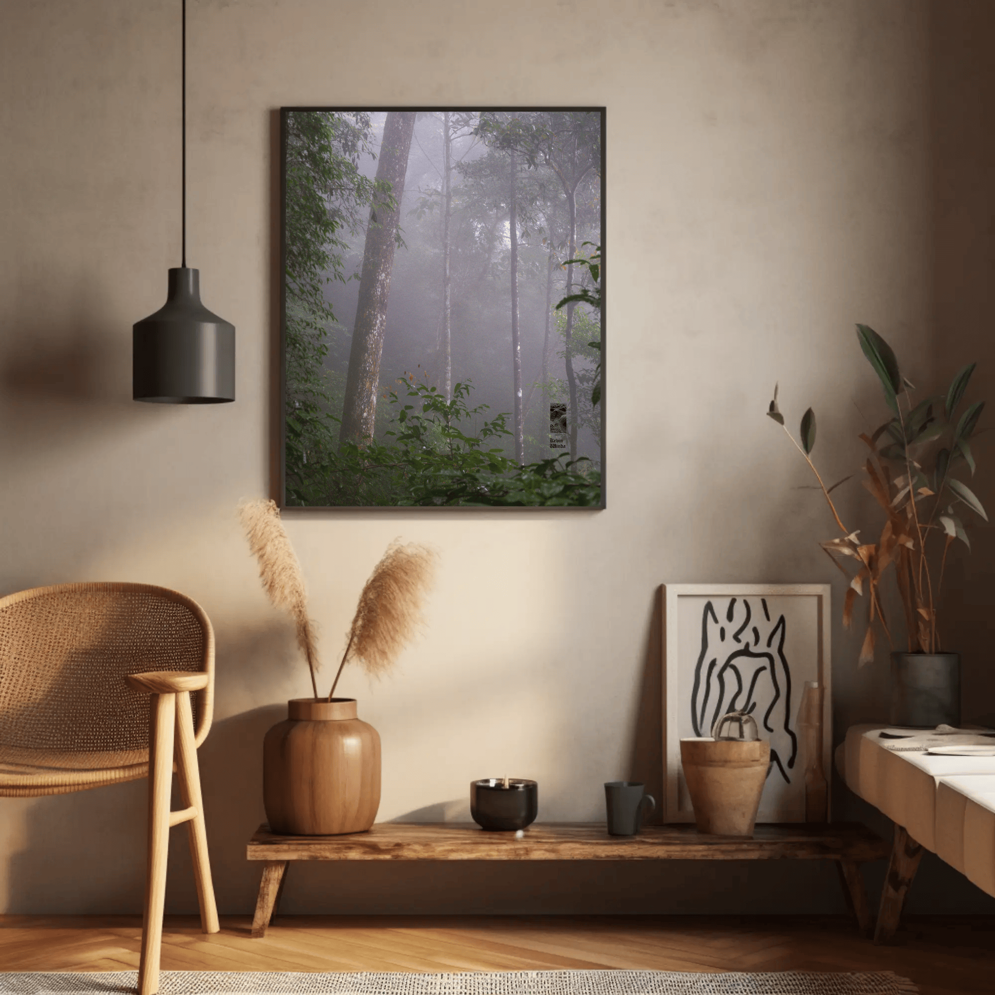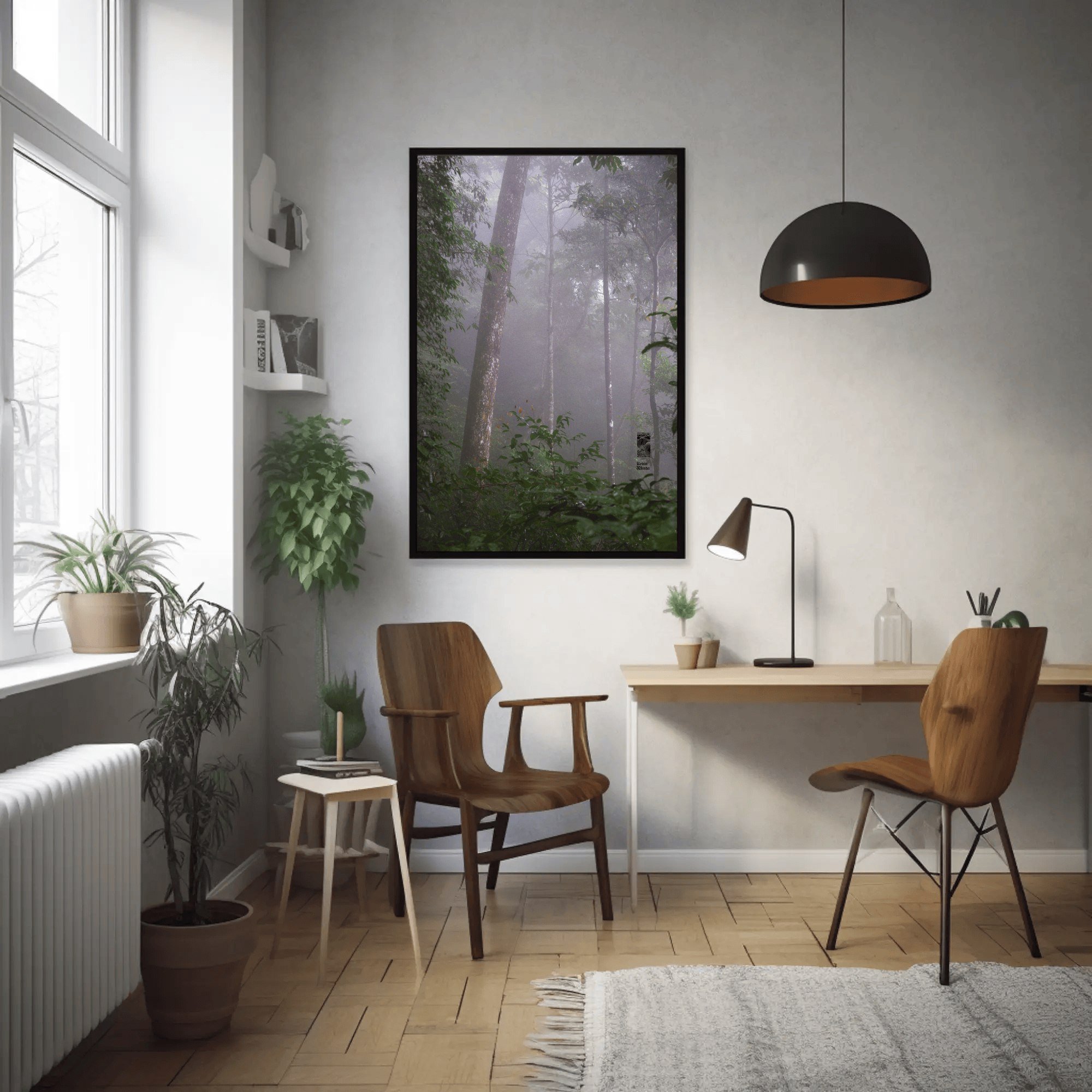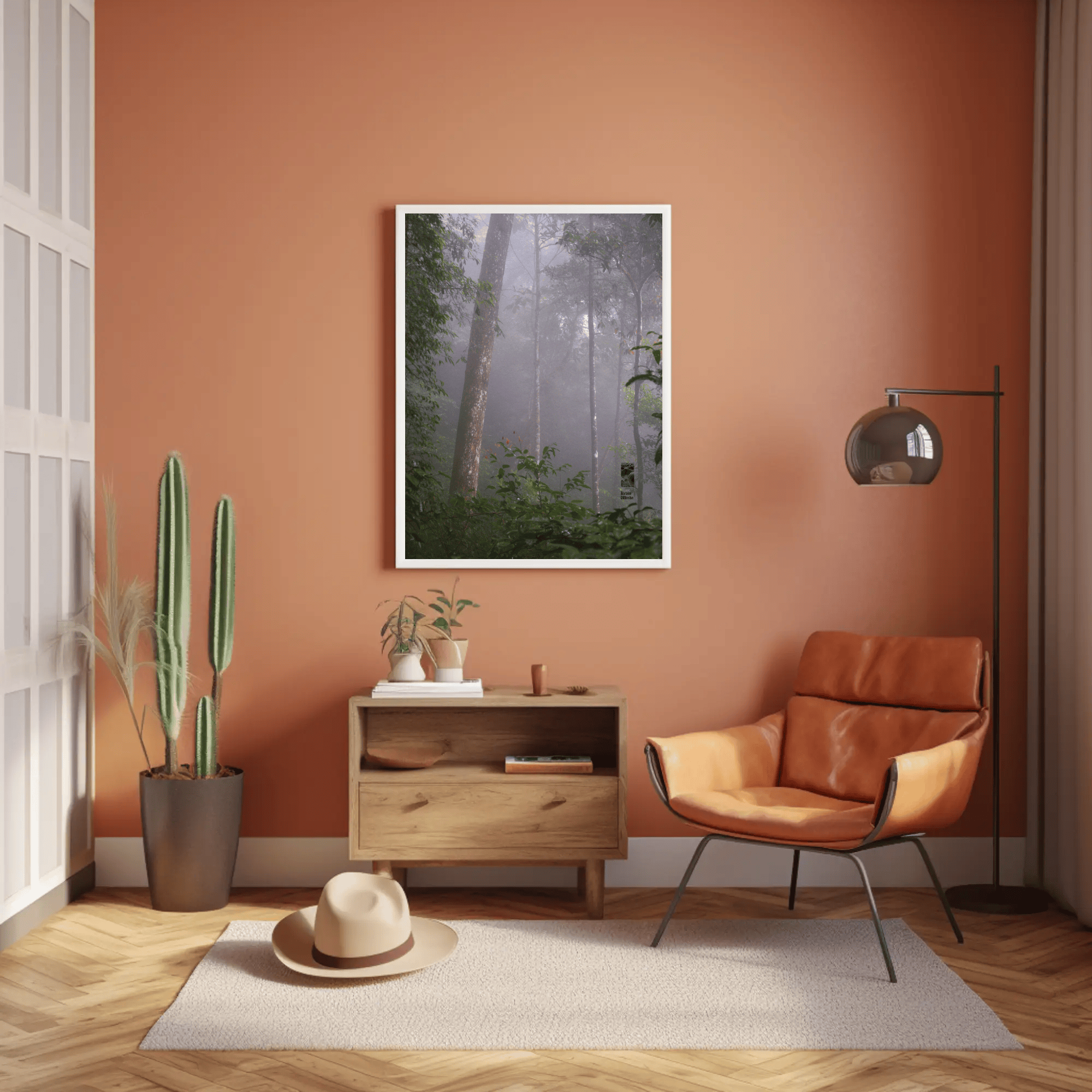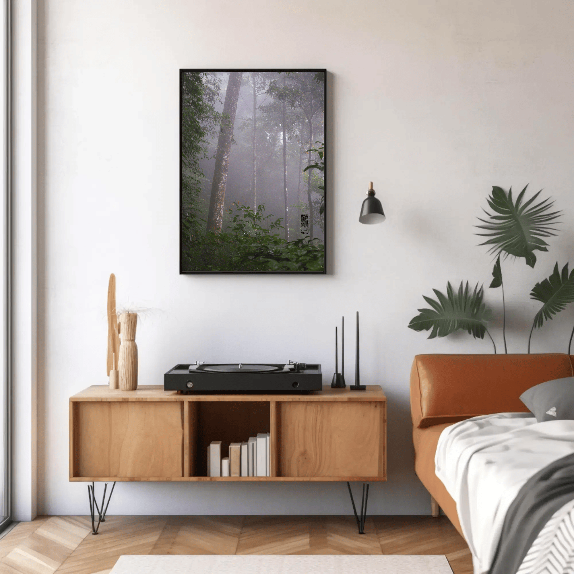 Mockups don't represent actual product sizes that you choose via variant options. Mockups just present artwork impressions in different environments. Frames and interior objects on mockups are not included in your order.