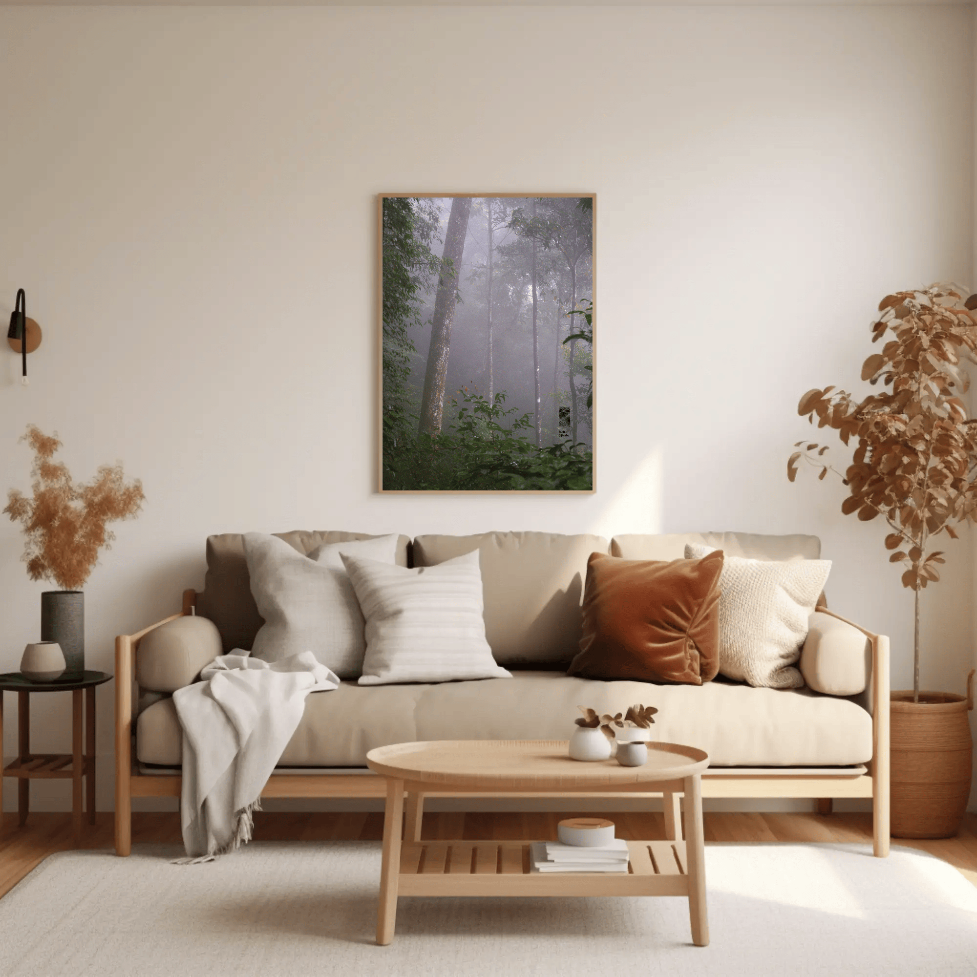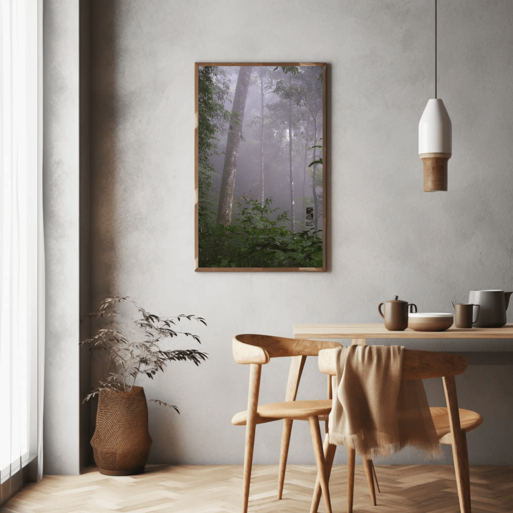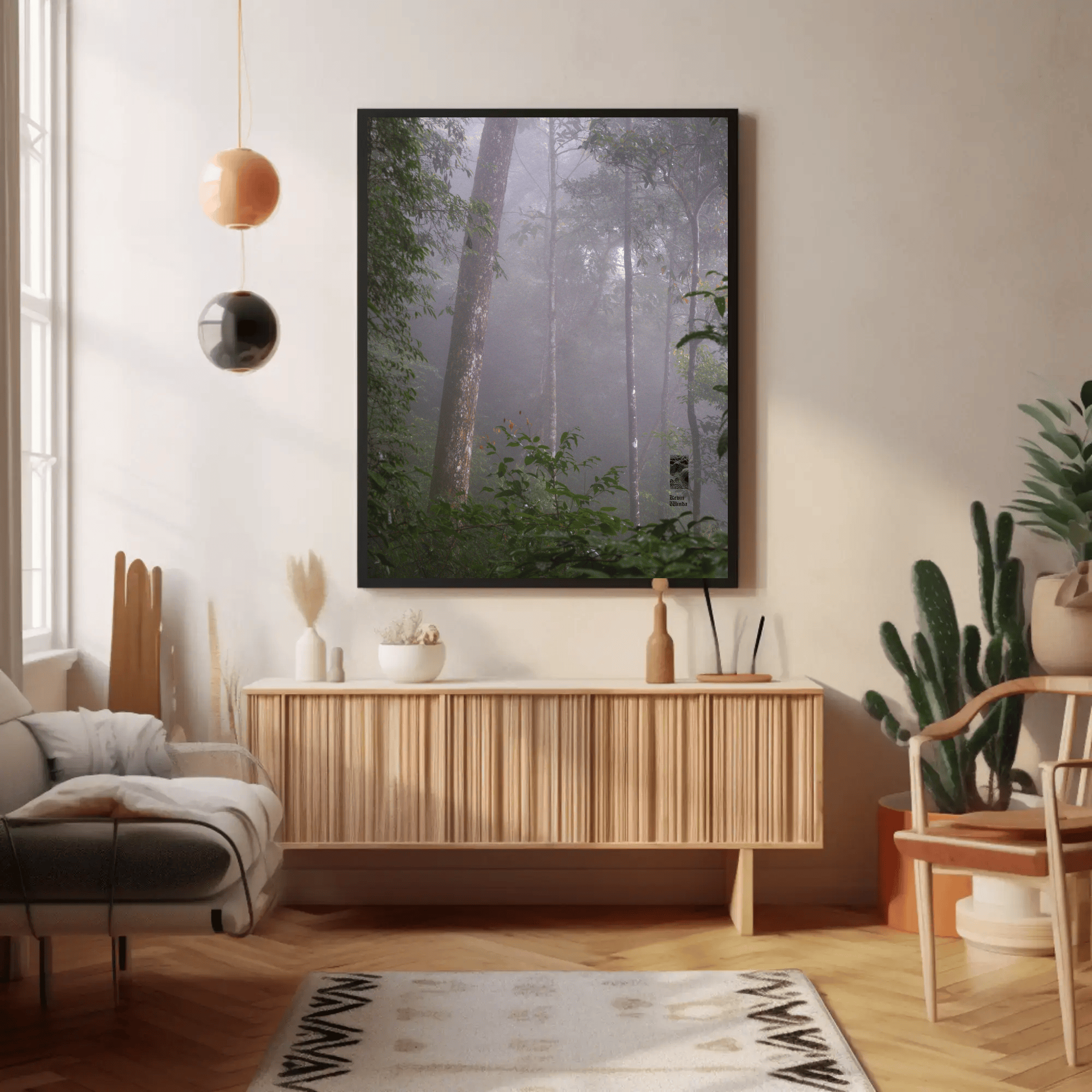 Mockups don't represent actual product sizes that you choose via variant options. Mockups just present artwork impressions in different environments. Frames and interior objects on mockups are not included in your order.