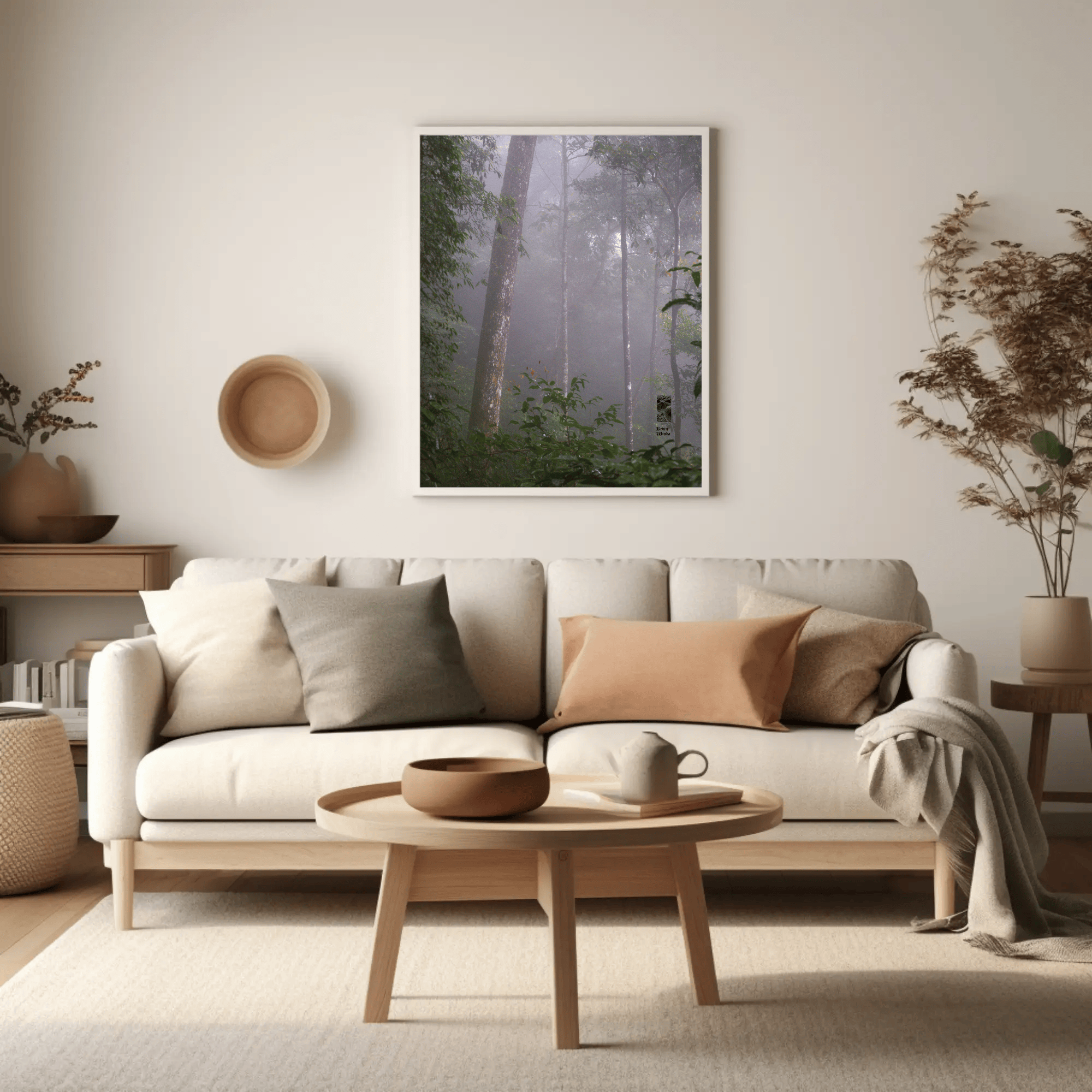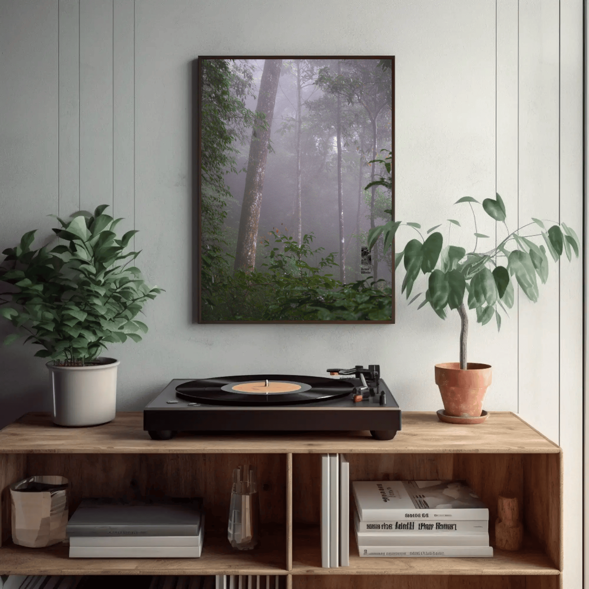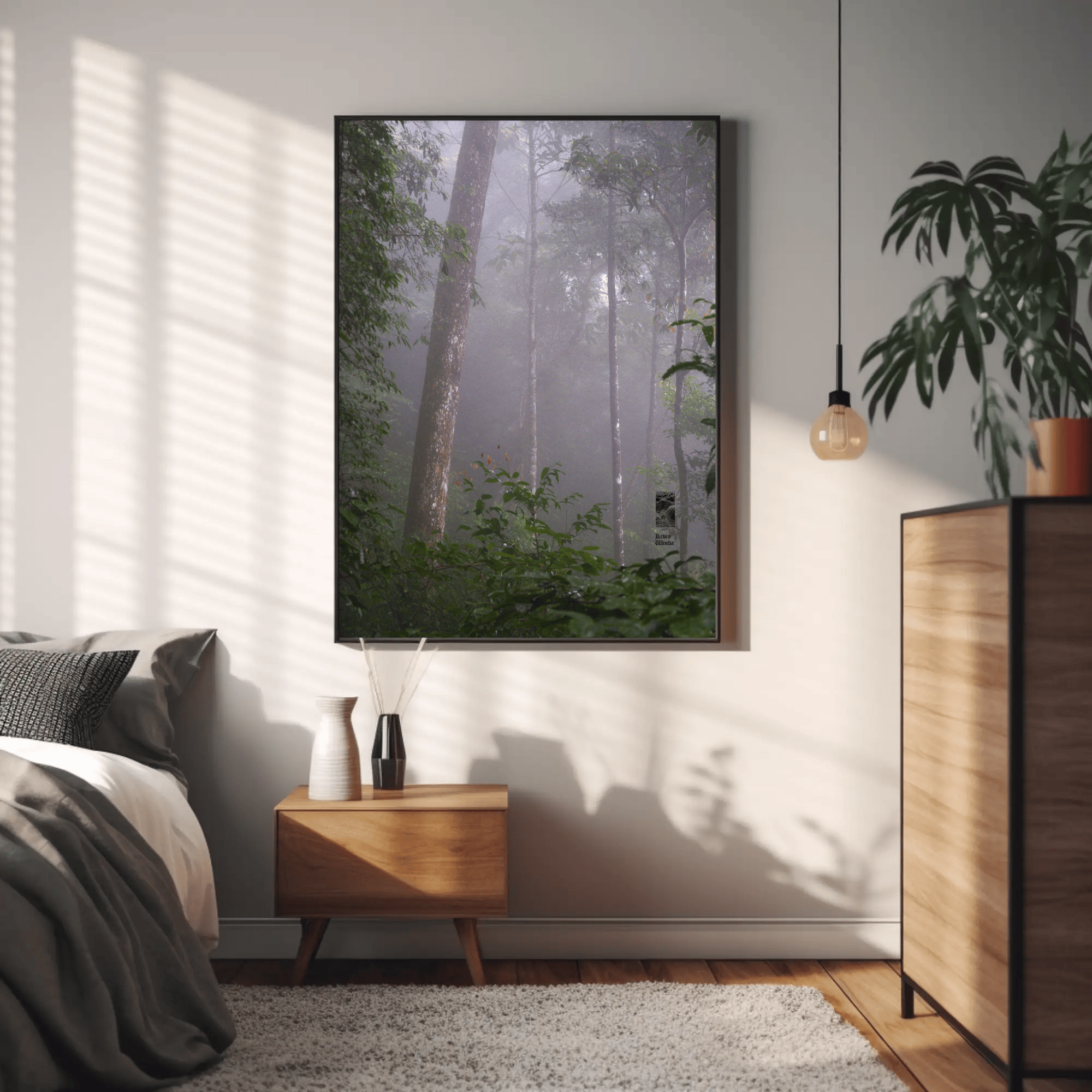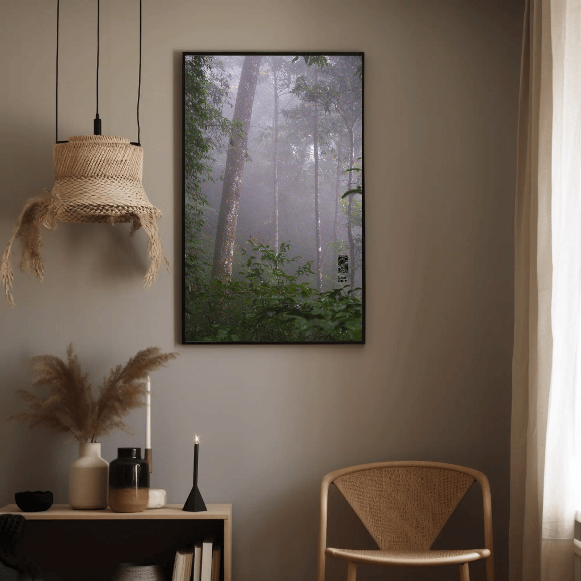 Mockups don't represent actual product sizes that you choose via variant options. Mockups just present artwork impressions in different environments. Frames and interior objects on mockups are not included in your order.