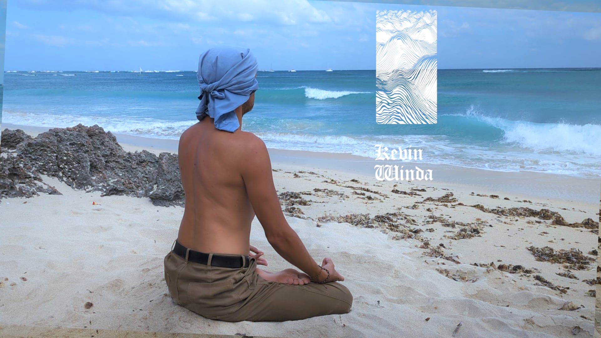 - Meditation in natural environment, on the ocean coast, rocks.