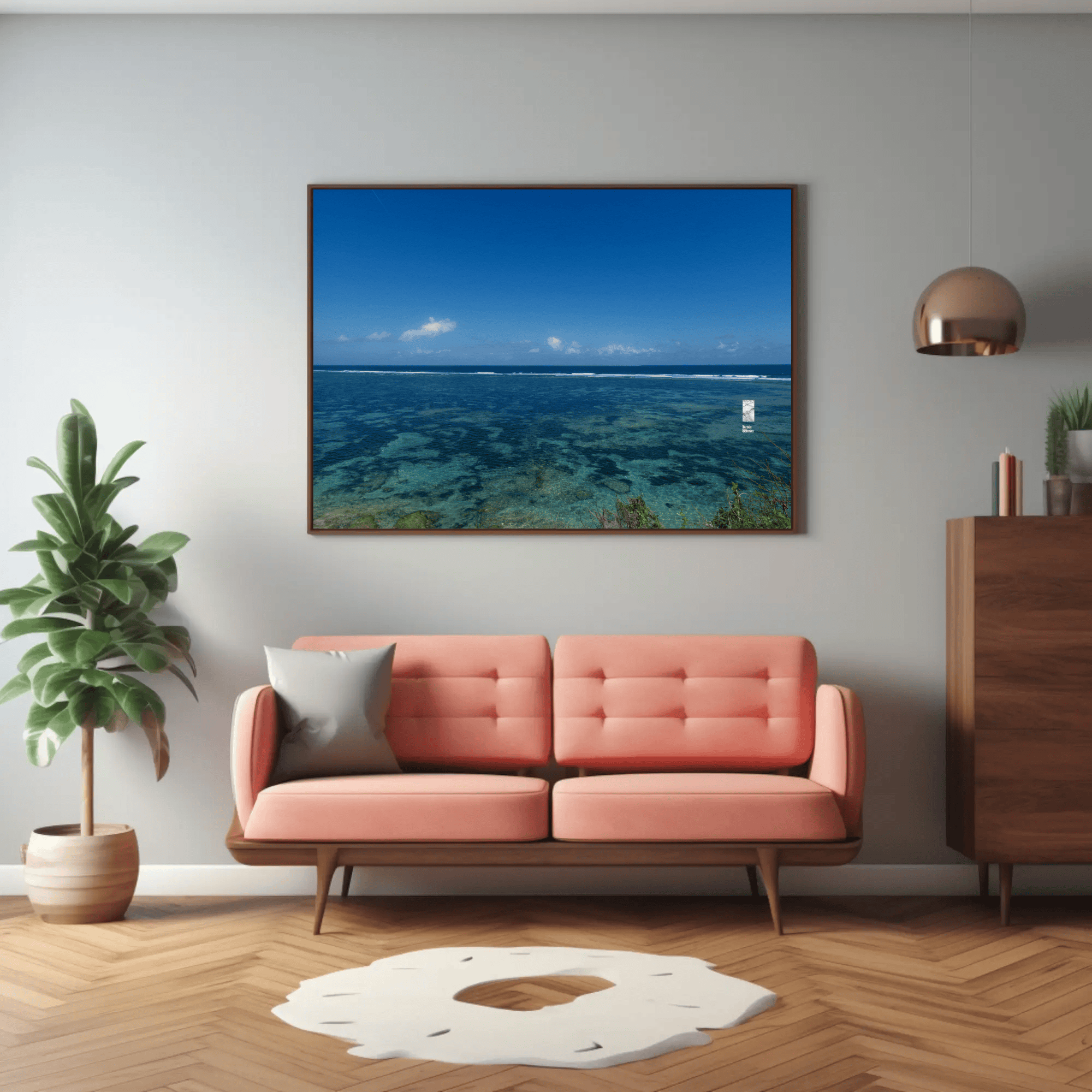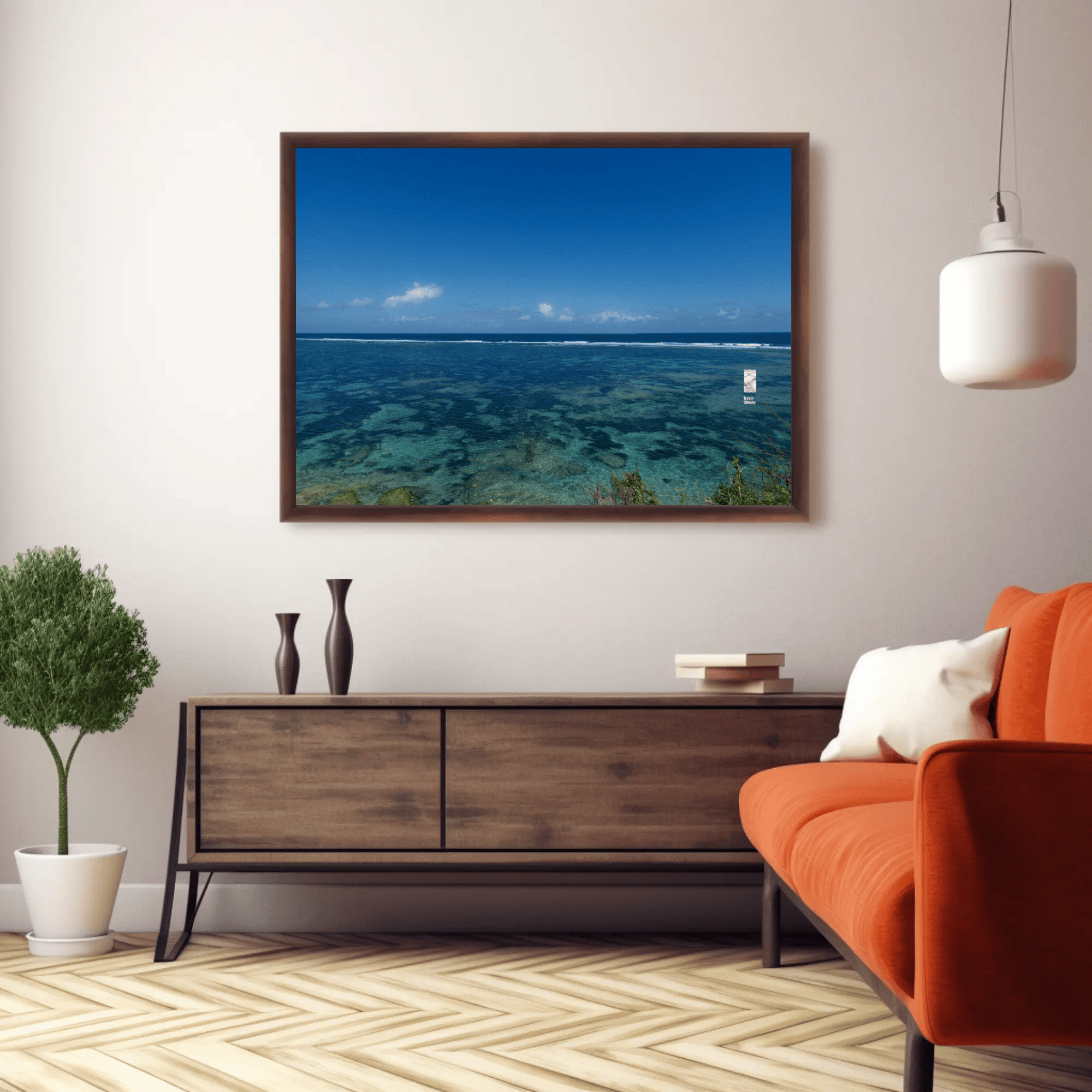 Mockups don't represent actual product sizes that you choose via variant options. Mockups just present artwork impressions in different environments. Frames and interior objects on mockups are not included in your order.