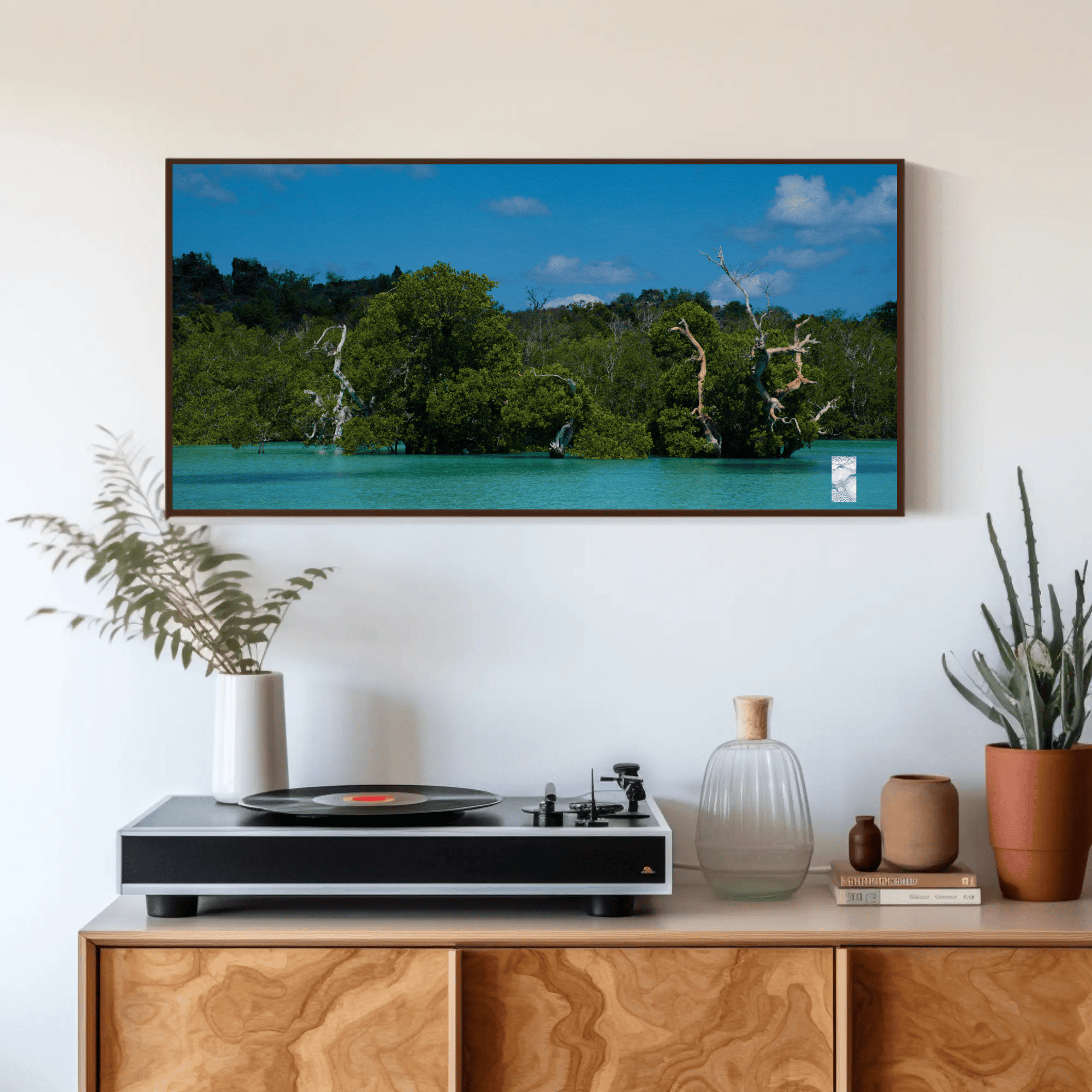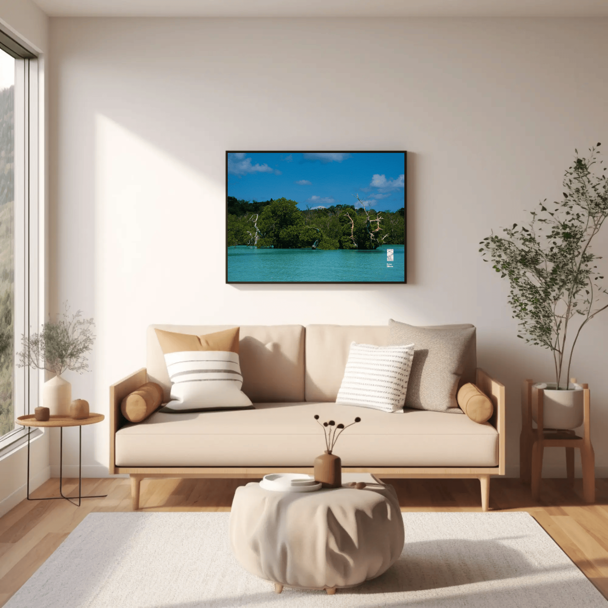 Meditation or Relaxation Spaces: The calming colours and serene imagery make this ocean trees canvas a great addition to yoga studios, meditation rooms, or personal retreats.