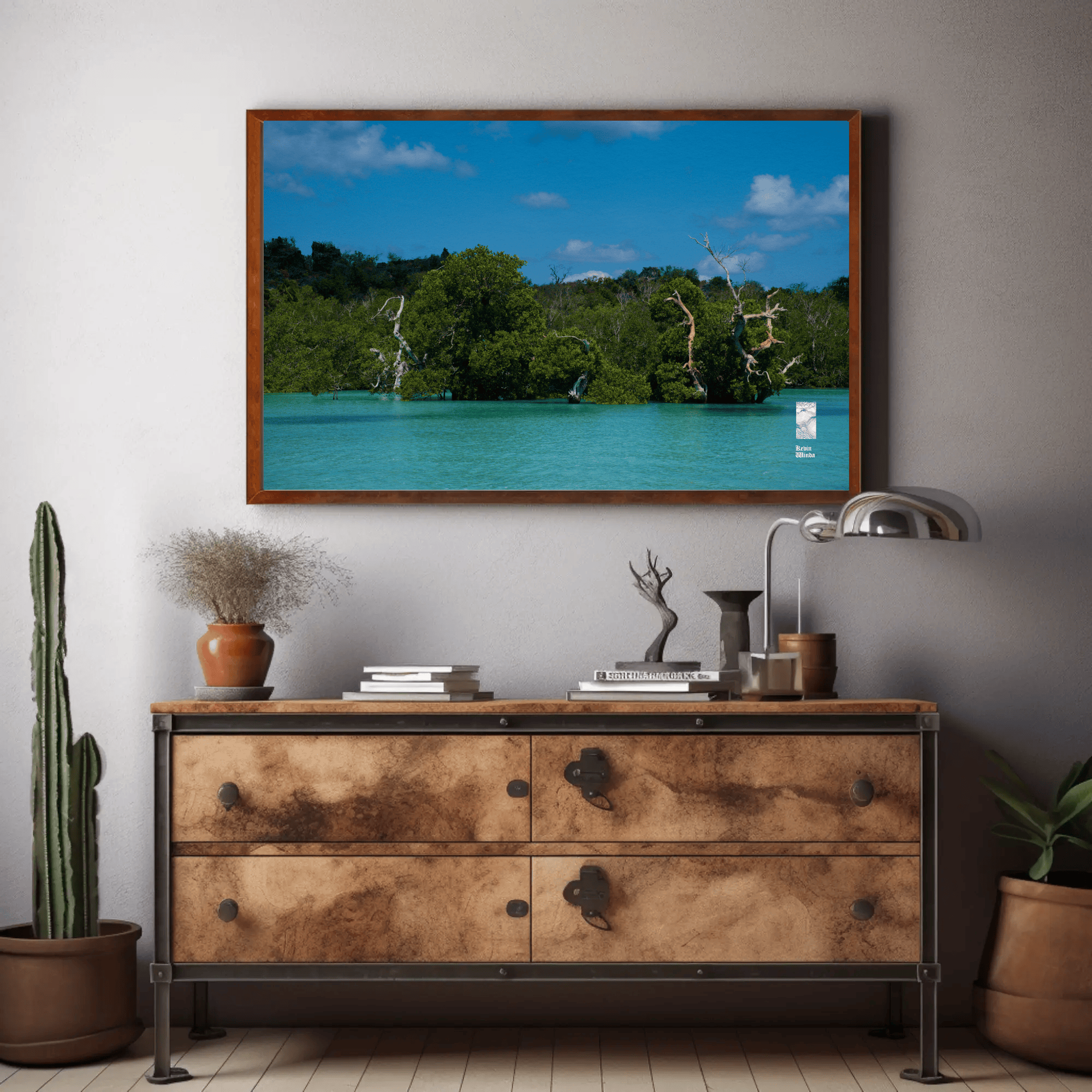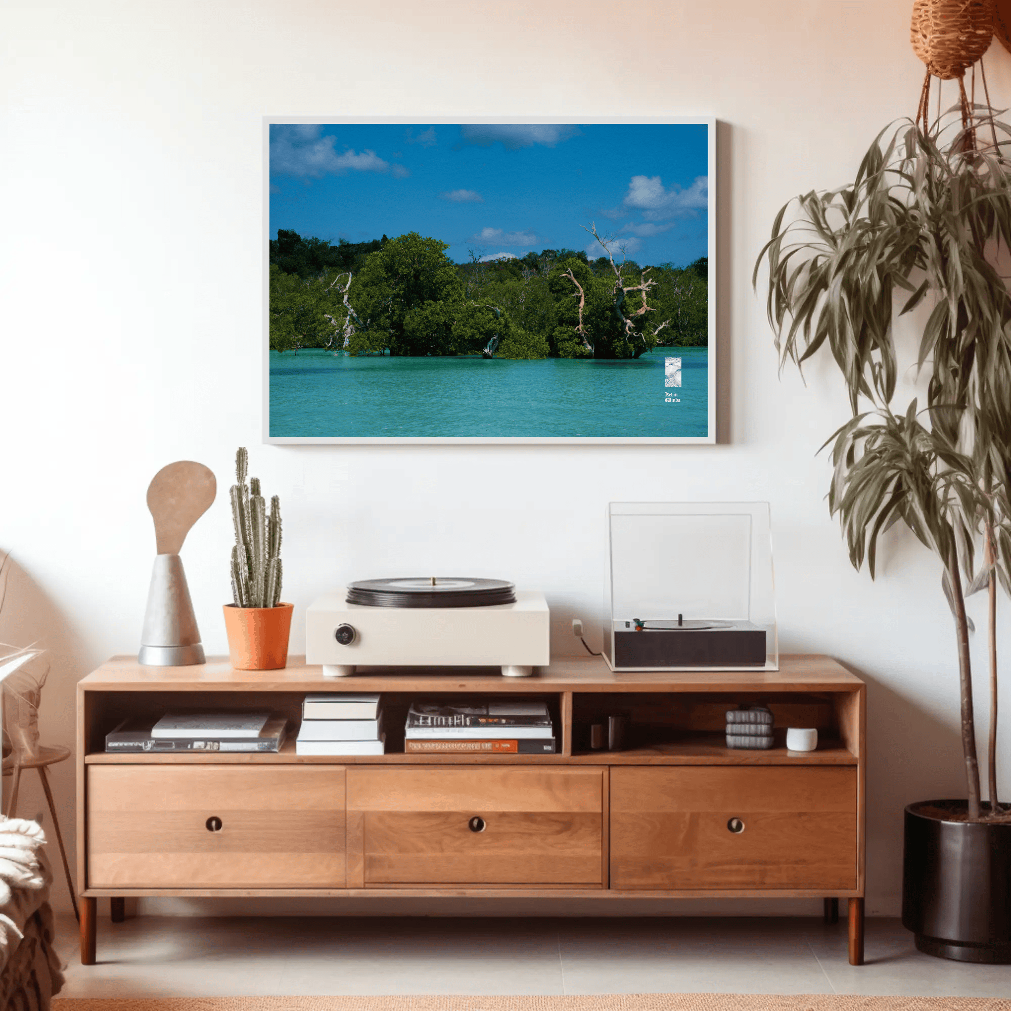 Mockups don't represent actual product sizes that you choose via variant options. Mockups just present artwork impressions in different environments. Frames and interior objects on mockups are not included in your order.