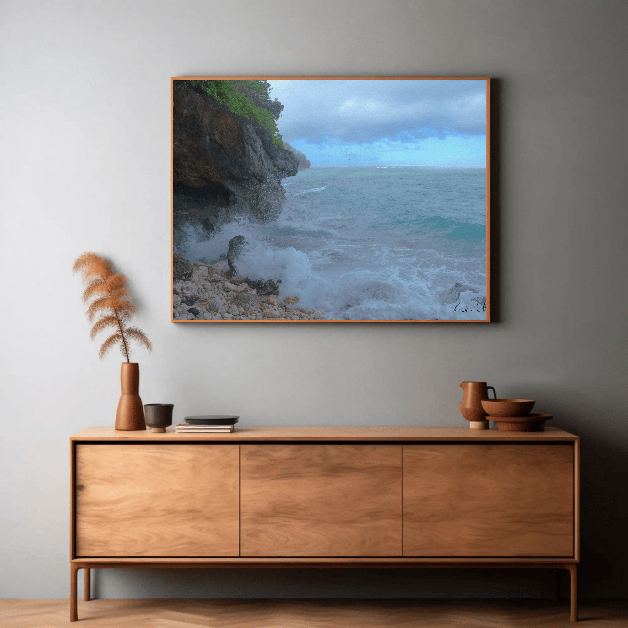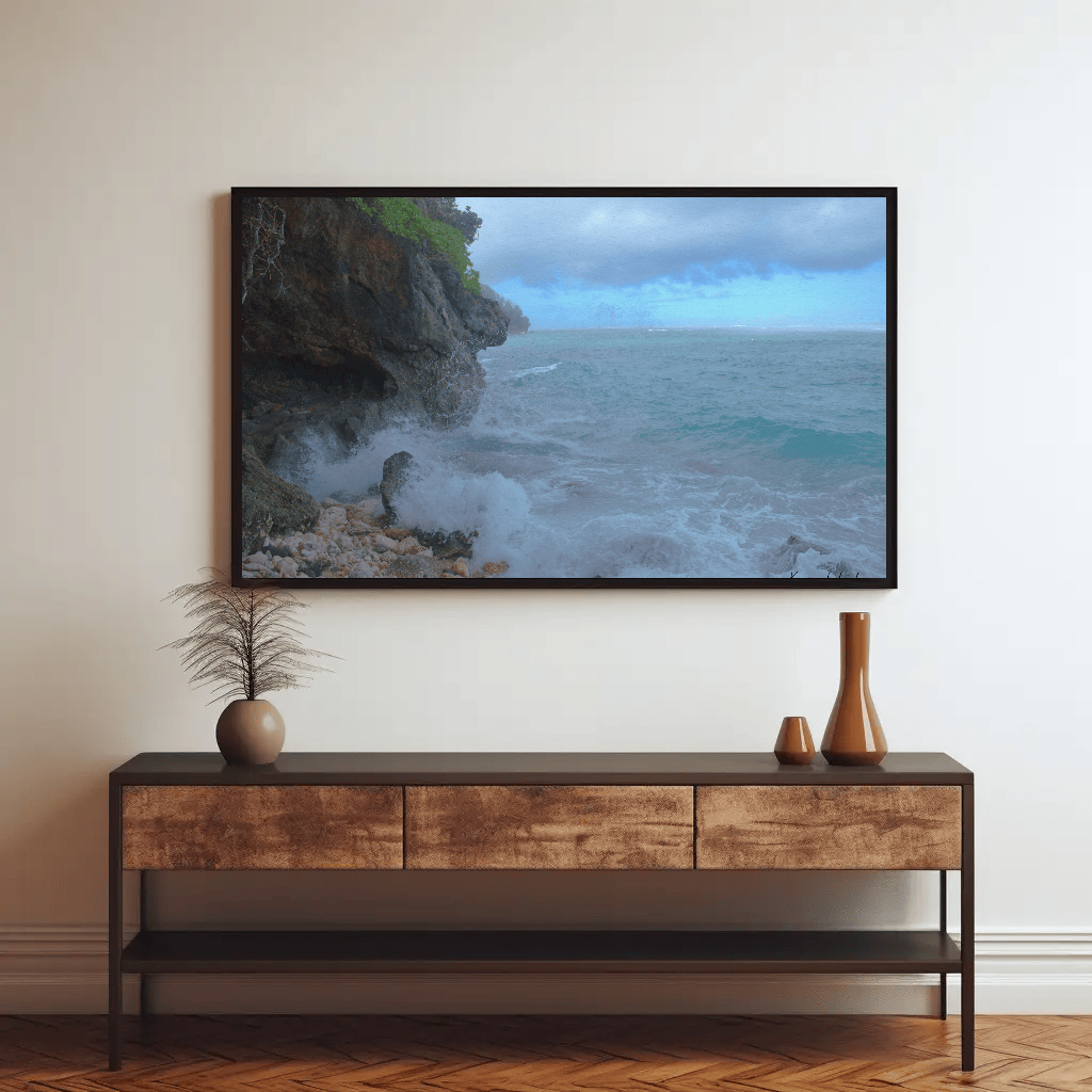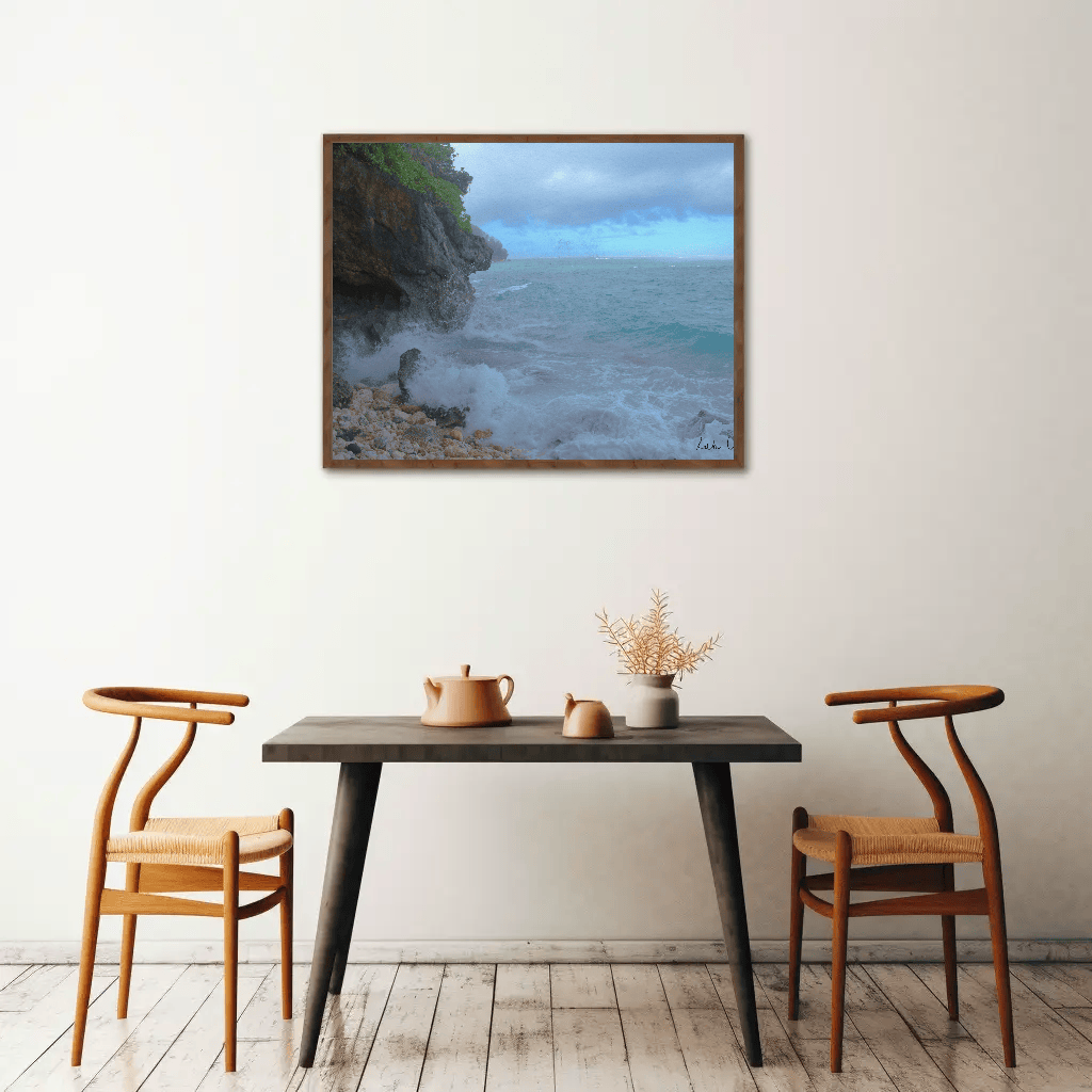 Bring the tranquil beauty of Green Bowl Beach of Bali into your home with this captivating ocean bwach wall print. Perfect for any space, this beach photography showcases the serene ocean waves and rocky beach, capturing the essence of one of Bali's hidden treasures. The ocean waves crash rhythmically against the rugged rocks, creating a mesmerizing dance of water and stone.